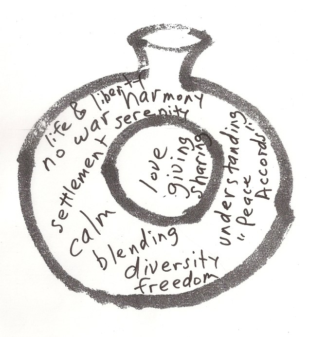 100 Bottles of Peace Published on: January 7, 2010January 7, 2010Author: kimyiBo 100 Bottles of Peace Sado’s Peace “life and liberty, no war, harmony, settlement, serenity, calm, blending, diversity, freedom, understanding, love, giving, sharing, Peace Accords” Share this: Click to share on Facebook (Opens in new window) Facebook Click to share on Pinterest (Opens in new window) Pinterest Click to email a link to a friend (Opens in new window) Email Click to share on X (Opens in new window) X Click to print (Opens in new window) Print Click to share on Tumblr (Opens in new window) Tumblr Like Loading... Related 100 Bottles of Peace Published on: January 7, 2010January 7, 2010Author: kimyiBo