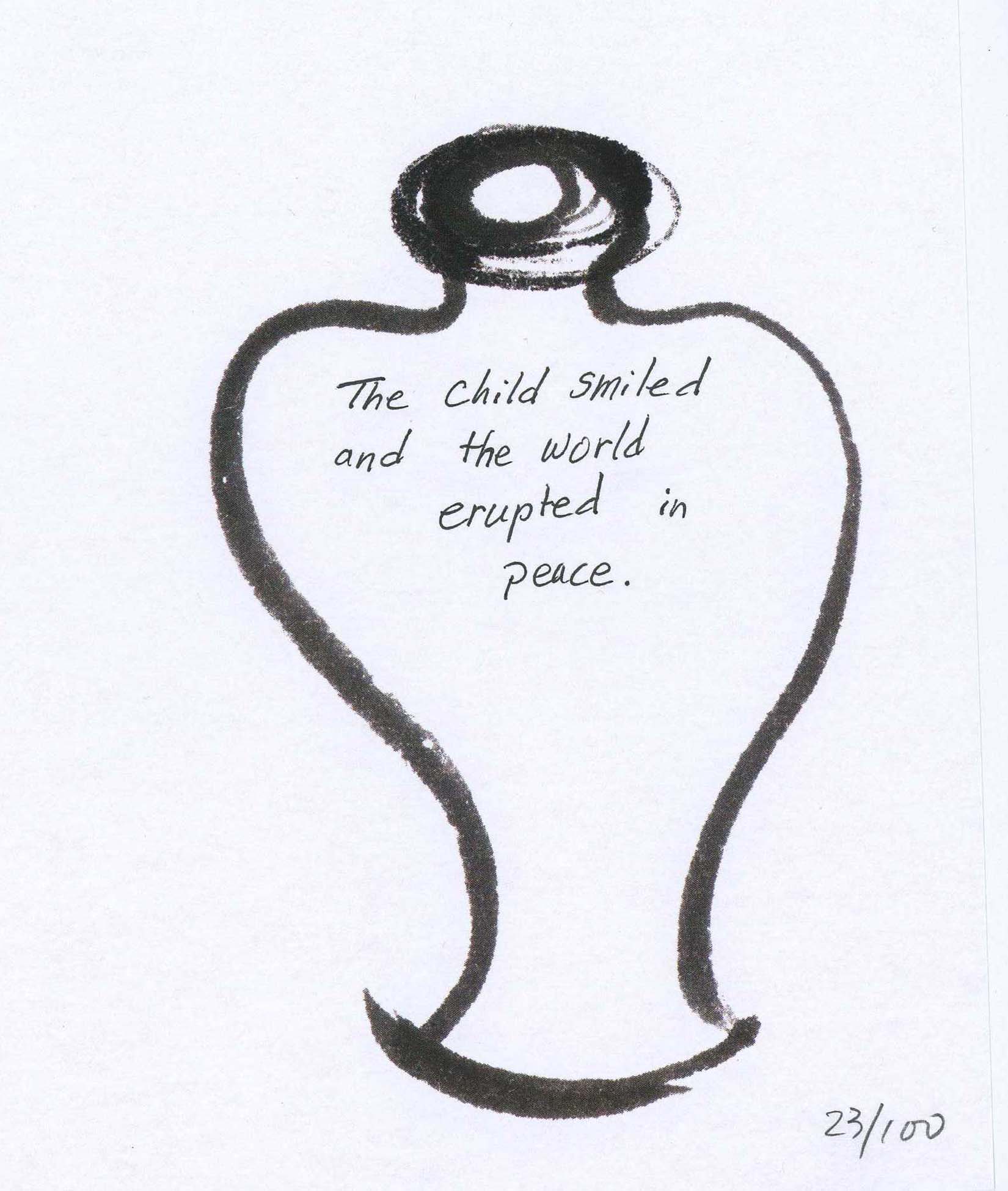 100 Bottles of Peace Published on: January 8, 2010Author: kimyiBo 100 Bottles of Peace Someone’s Peace “The child smiled and the world erupted in peace” Share this: Click to share on Facebook (Opens in new window) Facebook Click to share on Pinterest (Opens in new window) Pinterest Click to email a link to a friend (Opens in new window) Email Click to share on X (Opens in new window) X Click to print (Opens in new window) Print Click to share on Tumblr (Opens in new window) Tumblr Like Loading... Related 100 Bottles of Peace Published on: January 8, 2010Author: kimyiBo