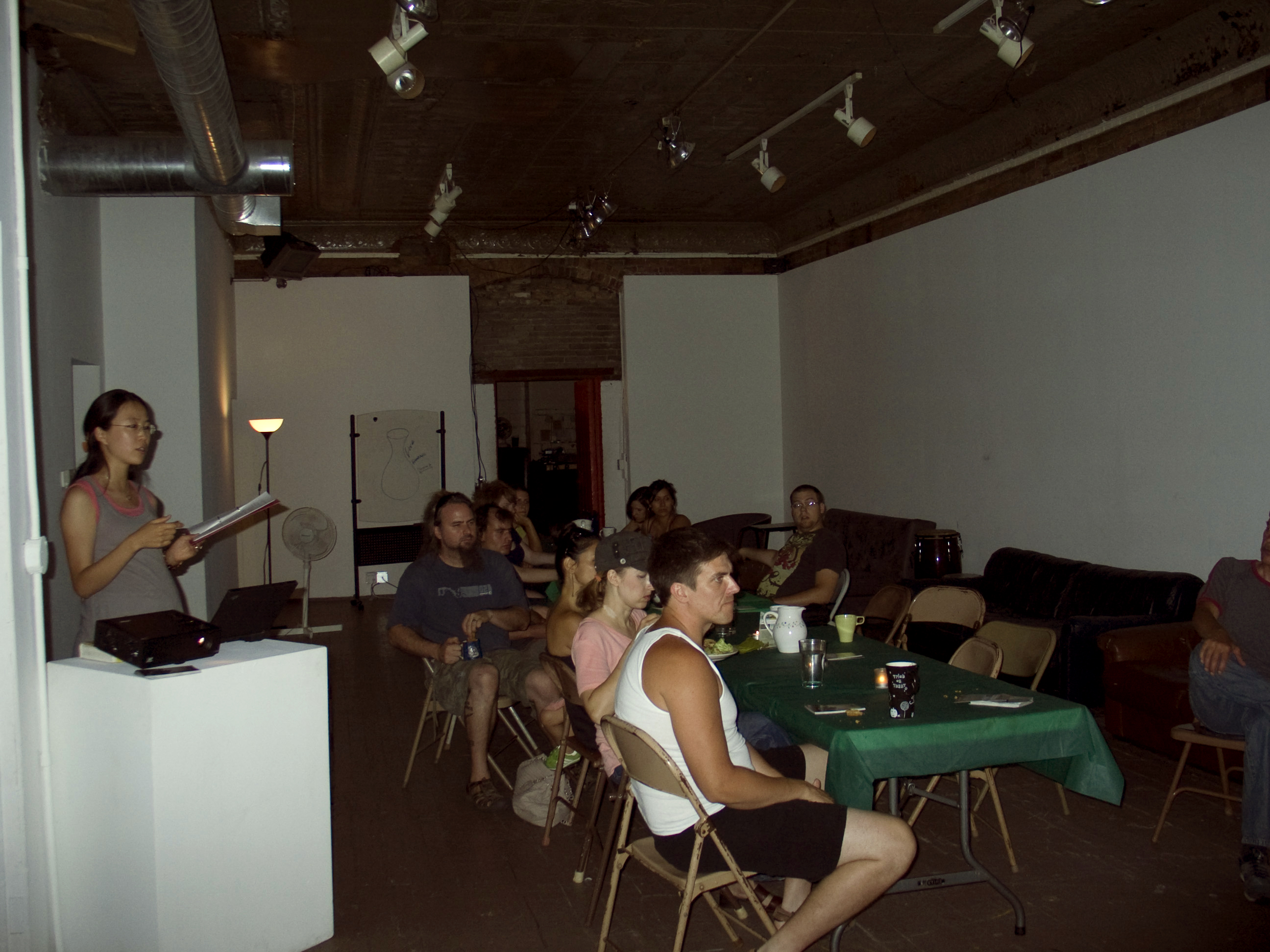 What a romantic way of putting a closure to KimyiBo’s Perpetual Tension. Candle light dinner with Meat sauce spaghetti, Korean spicy Bulgogi, garlic bread, lots of sweat cookies. The guests were the staffs and the artist community of the Fallout, KimyiBo and her photographer. After the meal, KimyiBo gave a forty minute talk of her artistic development since 2003.