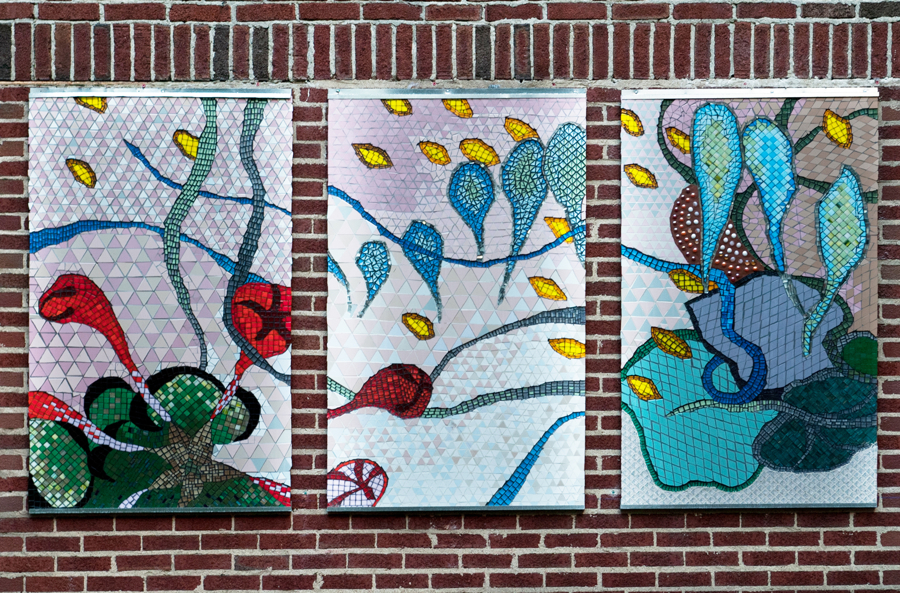 The hot and humid Minnesota summer of 2010 was the most productive time in my life: I was making my first tile mosaic mural while I was carrying my baby in my belly. Looking back, I feel lucky that I could have spent the last three months of my pregnancy in the art room of Edison High. I am also grateful for Mosaic on a Stick where I learn how to make mosaic art and met amazing mosaic artists.