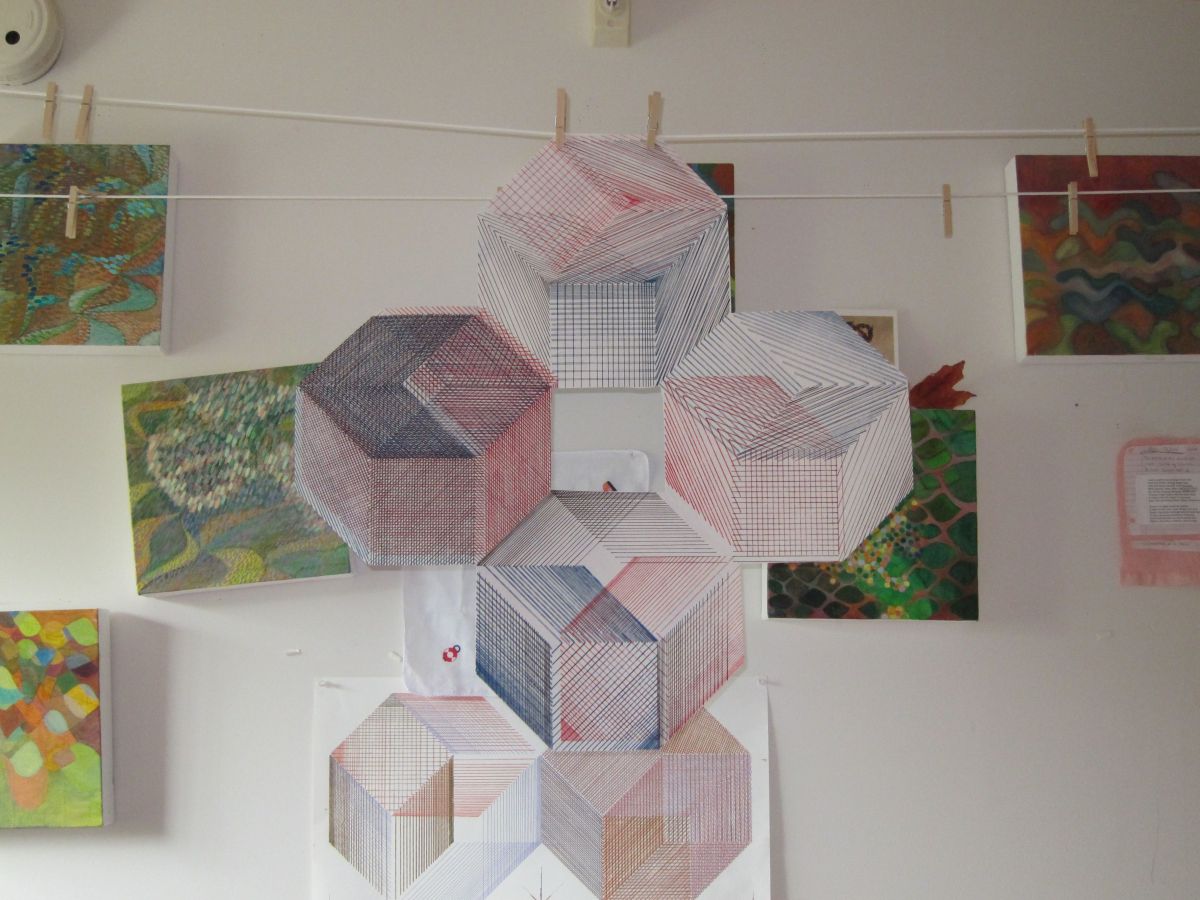 Process of Art and Studio Logbook Published on: April 22, 2012June 12, 2014Author: kimyiBo Process of Art and Studio Logbook 168 X 4 Octagons Three layers of superimposed line patterns in three colors 1 of 168, all unique Share this: Click to share on Facebook (Opens in new window) Facebook Click to share on Pinterest (Opens in new window) Pinterest Click to email a link to a friend (Opens in new window) Email Click to share on X (Opens in new window) X Click to print (Opens in new window) Print Click to share on Tumblr (Opens in new window) Tumblr Like Loading... Related Process of Art and Studio Logbook Published on: April 22, 2012June 12, 2014Author: kimyiBo