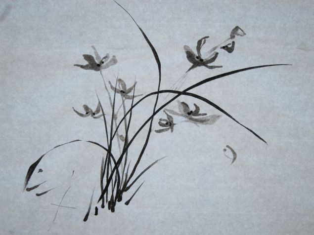 I met Brooke through Asian brush painting class I am teaching at Articulture. She studied sculpture in graduate school and in the past three years she has been working on figure drawings. Two years ago she joined my class to work on hand-eye coordination. She brings such a passion for art and learning into class. Now she is an amazing Sumi-e artist. Here is her orchid painting she did in class.