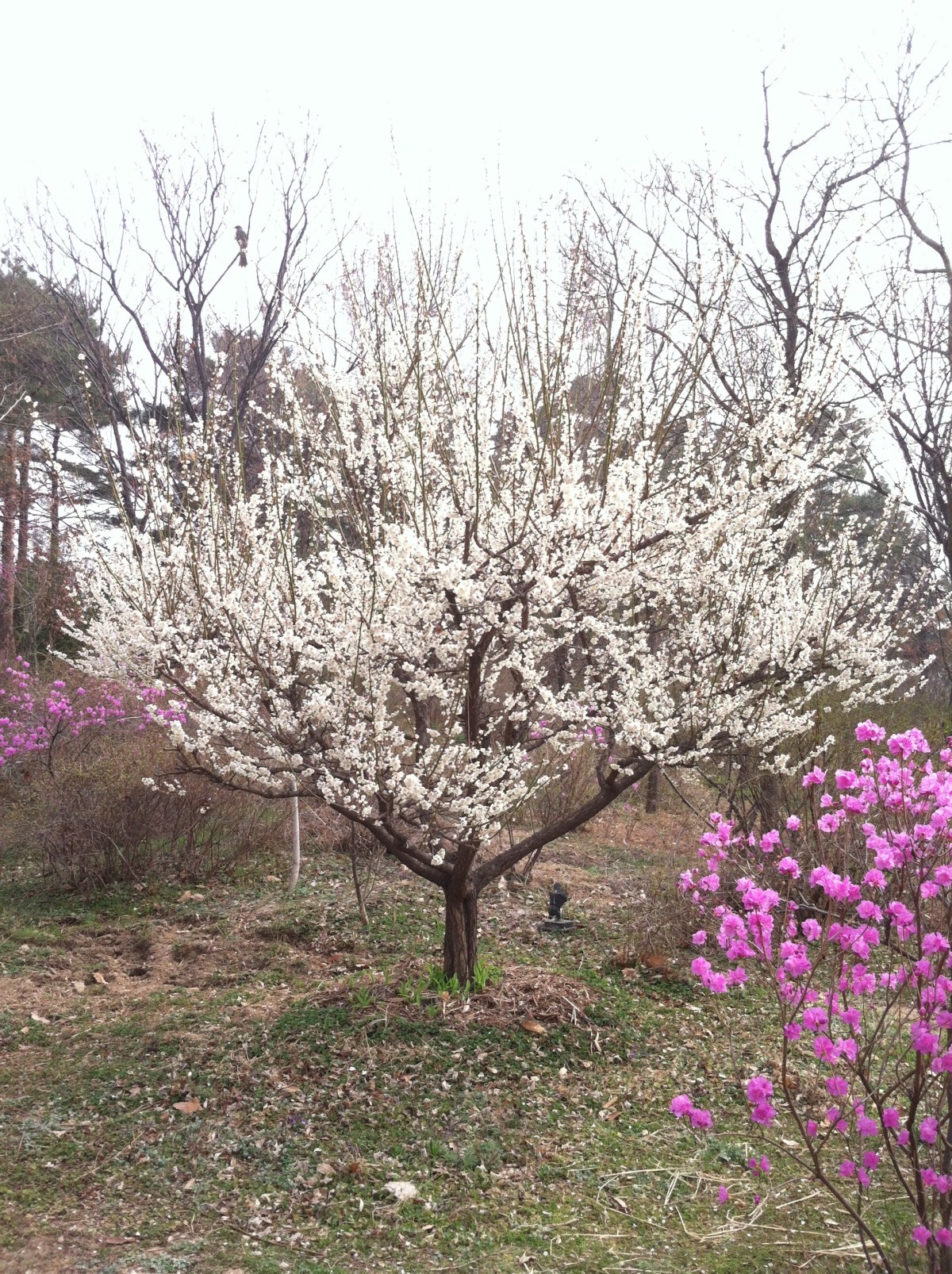 가지에 하얀 눈이 차갑지가 않구나.