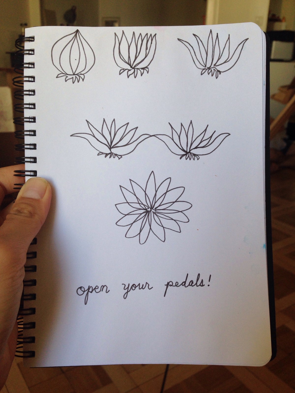 Daily Inspirations Published on: July 12, 2015Author: kimyiBo Daily Inspirations Open Your Petals pedals –> petals Share this: Share on Facebook (Opens in new window) Facebook Share on Pinterest (Opens in new window) Pinterest Email a link to a friend (Opens in new window) Email Share on X (Opens in new window) X Print (Opens in new window) Print Share on Tumblr (Opens in new window) Tumblr Like Loading... Related Tags: drawing. inspiration. Daily Inspirations Published on: July 12, 2015Author: kimyiBo