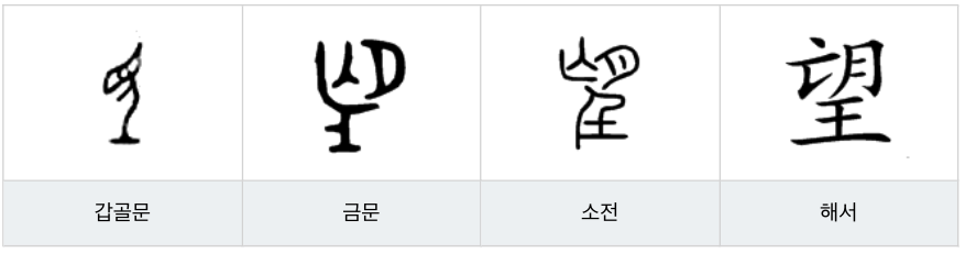 When we look at the history of how the character was developed, we can see that its origin was a pictogram that involved an eye and a form of a person standing on a high ground. Thus, it came to mean “to look at” and “to look forward to”. When 月(the moon) on the upper right hand corner was added it came to signify the full moon and “to hope”.